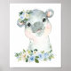 Hippo, Safari, Jungle, Blue Flowers, Boy Nursery Poster
