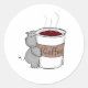 This design shows a cute whimsical Hippo, who is holding a big cup of coffee in his hands. The coffee is steaming hot and says coffee on the front of the paper cup. This design makes a wonderful gift for any coffee-lover or caffein-addict.