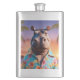 The product is a good size and came exactly as it was pictured. The lid is not attached to the flask, which could be dangerous on drunken nights... The print came out surprisingly well and looks very sharp. Would definitely recommend.