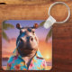 Funny Hippopotamus wearing a hawaiian shirt on a beautiful beach.