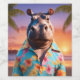 Funny Hippopotamus wearing a hawaiian shirt on a beautiful beach.