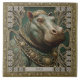Dive into a mystical journey of connection, beauty, and tribal essence with this exquisite Enchanted Hippopotamus Spirit Ceramic Tile. Crafted with the symbiotic harmony of dark green, brown, gold, and dark aquamarine hues, this unique piece fuses happycore aesthetics and carpet punk elements with a touch of tribal sophistication. The centerpiece, a majestic hippopotamus adorned in tribal jewels, exudes an aura of symmetrical serenity, reminding one of a sacred altarpiece.