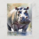 Hippo's Serene Waters A Watercolor Portrait Postcard