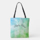Pretty Hippy Chick blue green design Tote Bag. Theme - "new age" spiritual trendy pastel mandala crystals