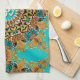 Customisable Home Décor Furnishings : Kitchen Tea Towel : Psychedelic eastern fusion ~ goa hippie inspired design in vibrant shades of aqua blue (turquoise) orange and purple plus also a gold Om symbol in the centre! » Great idea gift or personal purchase for your Yoga focus point. Enhance your kitchen, bedroom , office or any room doors with unique and alternative art design.