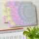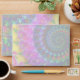 A psychedelic hippy style fractal pattern illustration in rainbow colours.