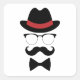 Fun design features the best hipster gentleman accessories including retro fedora, black rimmed glasses, moustache and bow tie.
