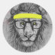 hipster lion classic round sticker
