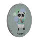 A personalised dart board featuring a hipster panda eating an ice cream cone. Edit the sample name shown with your desired name or other text.