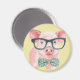 Cute digital watercolor features hipster pink pig with oversized glasses and a fancy bow tie