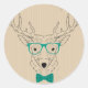 Hipster Reindeer Elk with glasses grungy Christmas Classic Round Sticker