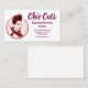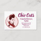 A line drawing of a hip woman with a trendy hairstyle creates a fabulous logo on this business card for a hair salon. Would also work well for cosmetics and fashion.