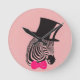Hipster Zebra with top hat and Bow Tie Round Clock