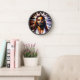 I received this as a birthday gift from my husband to replace a clock that had broken. It was perfect, pictures of my sweet family to see at every hour of the day. The size of the pictures looks nice for the size of the clock and I love looking at it! The only downside is there is no cover for the battery on the back, which makes me nervous having little kids running around the house, but an easy fix with some tape. The printing turned out clear, considering they were all cell phone pictures. Some of them look slightly grainy upon getting close up. But so nice overall!