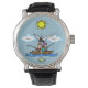 How fun is this watch for the couple that loves to fish? They're in the boat fishing and below is a fish at the number 6 and the sun is overhead at the top in the 12 spot. Each cloud is positioned at the 3 or 9 spots. You can customise this with their names in the clouds, or put in the numbers. Or, if you just want plain, white clouds, remove the text in the boxes. This also makes a great gift! Pick the watch you want the design on. Designed by Sheila Cicchi, Brownielocks.com. All Rights Reserved.