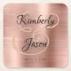 His & Her Names, Brushed Rose Gold Metal Wedding Square Paper Coaster