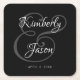 His & Her White Script Names, Black Wedding Square Paper Coaster