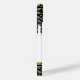 A christian phone case with the bible verse from Jeremiah 29:11, His plans for me are good. There is a modern burst pattern background in black and gold and an inset to add your initial monogram.