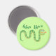 A dark and light green snake with red forked tongue and green text that reads Hiss Hiss on T-shirts, mugs, bags, cards, pillows, magnets, and more, great for kids and adults.