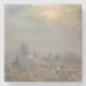 This design features a charcoal drawing by the American artist Glenn Cooper Henshaw (1884–1946). It shows an historical view of the cityscape of New York City in the USA. The outline of the buildings, with their roofs and towers, can be seen. This is before many of the large skyscrapers were built. A bridge can also be seen over the Hudson River. There appears to be a sunset in the sky. The original art was painted in 1912.