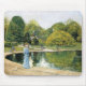 This design features original artwork by the American Impressionist painter Childe Hassam (1859–1935). It shows Central Park in New York City during the final years of the 19th century. There are elegant ladies with children walking around a lake in the park. There is a small white dog in the foreground, accompanying a lady in a blue dress, who is holding the hand of a small girl in a white dress. Lots of verdant green trees can be seen in the background beyond the lake. The sky is clear and it appears to be a beautiful summer's day. The original artwork was painted by Childe Hassam in 1892.