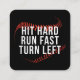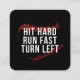 Hit Hard Run Fast Turn Left Funny Baseball Player Square Business Card