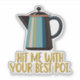 Coffee lovers and 80s music fans unite! This sticker is for you. Awesome retro coffee pot design on pillow says to 'hit me with your best pot'. Shades of Pat Benatar...
