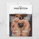 Introducing the Hit the Paws Button Save the Date! This charming, pet-themed card is perfect for couples who want their furry friend to announce their big day in style. Featuring playful text, "Hit the paws button, my humans are getting married," and a customizable photo of the couple (plus their beloved pet), this save-the-date brings joy and personality to wedding announcements. The back of the card includes a cute message from the dog’s perspective, inviting guests to get ready to "raise the woof" for the happy occasion. Easy to personalize and ideal for pet-loving couples!