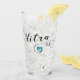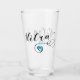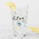 Drinking glass with Hitra flag in a heart, with scripted font design.