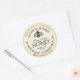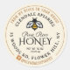 Personalise this honey label with your apiary name, street or owner name & location, net weight. "Pure Raw" is written in a script font and "Honey" in an elegant capitalised font beneath a catchy-looking "windowpane" honeybee. Facebook handle.