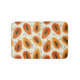A pattern of hand drawn tropical papaya fruit halves in colours of bright, deep orange complete with seeds. The papayas are surrounded by dots and the funny greeting "hiya papaya" in hand written text for an added bit of fun. My Hiya Papaya fruity pattern is a cheeky twist on the usual tropical fruit designs!