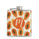 A pattern of hand drawn tropical papaya fruit halves in colours of bright, deep orange complete with seeds. The papayas are surrounded by dots and the funny greeting "hiya papaya" in hand written text for an added bit of fun. My Hiya Papaya fruity pattern is a cheeky twist on the usual tropical fruit designs!