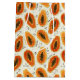 A pattern of hand drawn tropical papaya fruit halves in colours of bright, deep orange complete with seeds. The papayas are surrounded by dots and the funny greeting "hiya papaya" in hand written text for an added bit of fun. My Hiya Papaya fruity pattern is a cheeky twist on the usual tropical fruit designs!