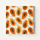A pattern of hand drawn tropical papaya fruit halves in colours of bright, deep orange complete with seeds. The papayas are surrounded by dots and the funny greeting "hiya papaya" in hand written text for an added bit of fun. My Hiya Papaya fruity pattern is a cheeky twist on the usual tropical fruit designs!