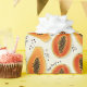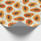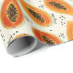 A pattern of hand drawn tropical papaya fruit halves in colours of bright, deep orange complete with seeds. The papayas are surrounded by dots and the funny greeting "hiya papaya" in hand written text for an added bit of fun. My Hiya Papaya fruity pattern is a cheeky twist on the usual tropical fruit designs!
