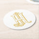JH Monogram or HJ Monogram initials logo in gold on coaster. For other colour options or digital file enquiries, please contact the seller.