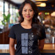 I give wanted to give this a 4 instead of a 5 because these Basic DARK T0shirts run unexpectedly SLIM or Narrow. Which is great if you do not have a potbelly, but I have a paunch. It isn't the shirt's fault that I've got a beer belly. The design and shirt itself is a quality cotton shirt. The color is more of a deep purple, but still a very pretty color. The Basic DARK T-shirts run a bit SLIMMER than the Basic Ts. The neck is a fraction narrower (or seems to be narrower) also. I'm a paunchy middle-aged woman and my neck is 12 inches (31cm) thick and the neckline fell about the same as in the photo of the man, and I had the desire to tug it a bit. So if you're a thick necked man or like loose shirts, be aware these are slimmer shirts. Once I get rid of my lockdown paunch it'll look great. The shirt washed well in cold water with no apparent bleeding. We don't have a dryer, so it hung dry. Did not shrink. Love the colors and the design. The design looks smaller on my shirt than it does on the model on-line. But still, it looks good on the shirt. The printing looks as it does on the model, just the size seems fractionally smaller. Washed garment in cold water, hung dry and design appeared unaffected.