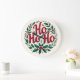 Ho Ho Ho Christmas Wreath Typography Design Large Clock