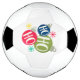 Ho Ho Ho Festive Christmas Xmas Modern Holiday Soccer Ball features three whimsical Christmas baubles with the text "Ho Ho Ho" in modern typography accented with snowflakes. Designed by Evco Holidays www.zazzle.com/store/evcoholidays