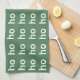 Bring holiday cheer to your kitchen! The words "ho ho ho" appear repeatedly in white over a Pine Green background on this fun kitchen towel.
