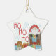 Santa Claus is coming down the chimney and bringing lots of toys and gifts! Red text reads "Ho Ho Ho" on this colourful and fun keepsake holiday ornament!
