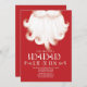 Cute Christmas Ho Ho Ho Santa gift christmas party invitation featuring a santa's beard set on a red background embellished with hand lettered typography. Easy to personalise with your holiday party information.