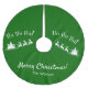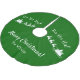 Add a fun seasonal touch to your home with this custom green and white tree skirt. Tree skirt features green background with white Merry Christmas greeting and Ho Ho Ho text, your family last name, and Santa Claus flying in his sleigh with reindeer.