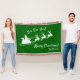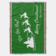 Add a fun seasonal touch to your home with this custom green and white throw blanket. Blanket features green background with white Merry Christmas greeting and Ho Ho Ho text, your family last name, and Santa Claus flying in his sleigh with reindeer.