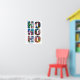 Ho Ho Ho with vibrant colourful bold alphabet letters .Cool ,whimsical and artistic watercolor paintings with vibrant red ,blue, yellow, white colours by Bulgan Lumini (c). Santa Claus is playing violin and sax in the snowy winter night under the blue sky ,moon and yellow stars with a funny ,expressive owl ,cat and his Christmas sack full of colourful presents,snowman red bows,ribbons,toys,christmas tree