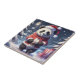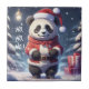 Happy holiday wishes! Cute Santa Panda with snowy backgroud.