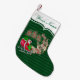 The Ho Ho Ho Santa Sleigh Reindeer Personalised small Christmas stocking brings the timeless magic of Christmas to life, enchanting both kids and adults with its nostalgic charm. Featuring Santa Claus, or St. Nick, in his iconic sleigh pulled by reindeer, this design evokes the wonder of Christmas Eve. The words "Ho Ho Ho" add a playful and cheerful touch, while the green-on-green stripe pattern provides a classic and elegant backdrop. Perfect for personalisation, this stocking becomes a treasured keepsake, reminding everyone of the joy and traditions of the season. Its heartwarming design captures the essence of Santy Claus and the spirit of the holidays, making it a delightful addition to any festive celebration.