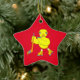A quality product. Very nicely printed which wraps around the edge with a plain back. Not at all to heavy to fall off that tree branch. The printing seems crisp and robust enough to last for many a Christmas.