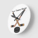 Crossed sticks, a puck and your name or your teams name. Remember if you don't want to personalise you must delete the text that is on the clock in the templates.