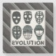 Hockey Goalie Mask Evolution Stone Coaster. Design showing the evolution of ice hockey goalie masks from the late 50's when they where first worn to the modern day.